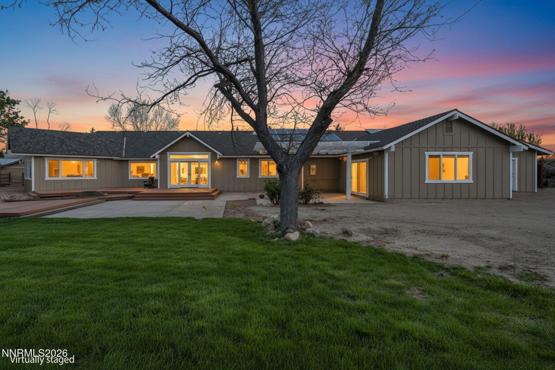 Welcome to a true horse lover's dream in the heart of Gardnerville. Situated on a desirable corner lot with sweeping views of the Sierra Nevada mountains, this exceptional 4-bedroom, 3-bathroom property offers everything you could want in your own private ranch. This home showcases stunning 3/4 inch Oak hardwood floors throughout the home, new Anderson doors and windows with knotty alder trim throughout. You will love the beautifully remodeled kitchen featuring custom cabinetry, a butcher block island, quartz countertops, and brand-new appliances. The bathrooms have been thoughtfully upgraded with floor-to-ceiling custom tile showers, heated floors, modern finishes, and LED lighting throughout. When we say updated, we mean it-nearly every detail has been redone, including a tankless water heater, windows, drywall, paint, plugs, switches, lighting, and more, creating a truly turnkey experience. Equestrian amenities are second to none, including a 3-stall barn with tack room, state of the art irrigation for pasture, water rights, hay barn, Series 60 round pen, Olympic-size arena, and a racetrack surrounding the 3 acre pasture. Multiple gated access points provide excellent functionality and ease of use across the property. Additional highlights include newer metal roof on barn with new electrical, valuable surface water rights, over 175 trees offering privacy and beauty. The solar panels are owned, newer roof with presidential shingles, two newer AC's/ furnaces and so much more! This property is extremely rare and offers luxury finishes, functionality for those seeking ultimate freedom, and wide-open spaces with endless potential. Schedule your private showing today.