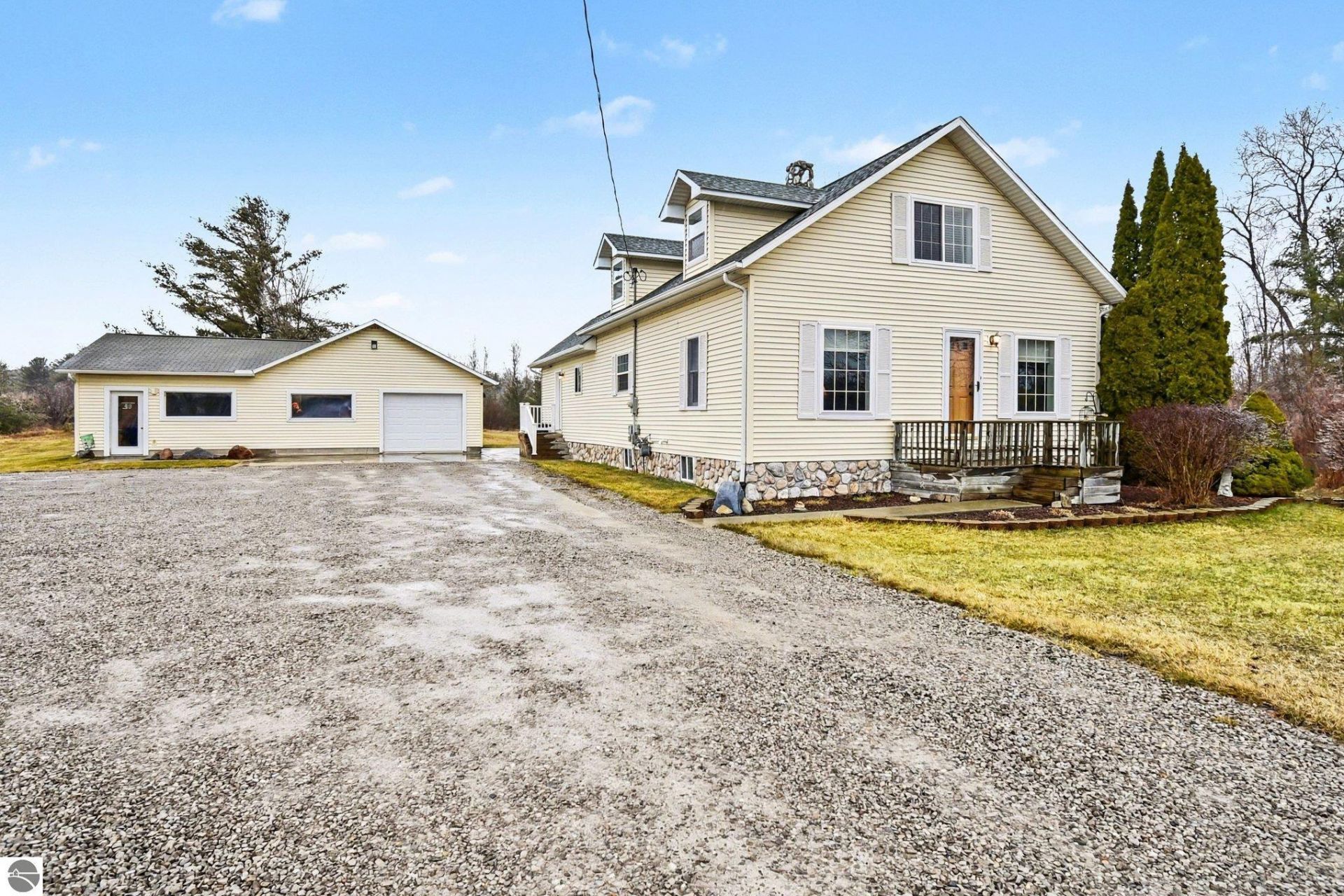 Charming Farmhouse Oasis in Tawas City! Welcome to your dream retreat at 1400 W. M - 55, Tawas City. This completely renovated farmhouse beautifully combines modern luxury with classic charm all set on an expansive 13.65 acres of picturesque land. This home includes 3 inviting bedrooms and 2 full baths featuring a convenient main floor bedroom and bath for easy accessibility. Create culinary masterpieces in your stunning kitchen, equipped with stainless steel appliances and elegant granite counter tops perfect for entertaining family and friends. Enjoy the elegance of selective crown molding in key areas complemented by all new flooring throughout the home. Whether you're practicing your swing on the 150 yard golf range or exploring the walking/bike trails, this property is designed for outdoor enthusiasts. There is a quaint, vintage barn that adds so much character to the professionally landscaped grounds. The 24 x 28 detached garage comes with an attached office, ideal for a home office, man cave, workout room, or tailoring to your lifestyle! There's space for 6+ vehicles making it easy to host guests and embark on outdoor adventures. Unwind on the spacious deck soaking in panoramic views of your expansive property. A new (2026) furnace efficiency while an external disconnect for a generator offers peace of mind during rough weather. This property is not just a home, it's a lifestyle waiting for you to embrace! Don't miss your chance to own this slice of paradise! Schedule your private showing today!