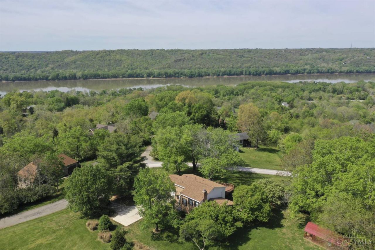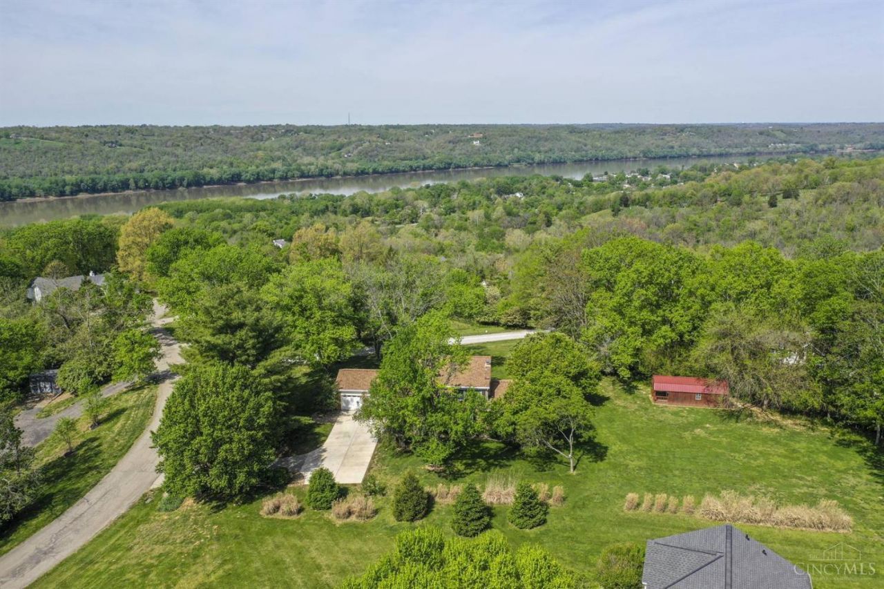 Nestled on 1.036 ac. is an artfully crafted 3 bedroom, 2.5 bath home offering timeless charm, custom finishes & stunning river views! Concrete driveway, 2 car garage & front patio. Expansive living room features a wood burning brick fireplace, custom built-ins, crown molding & large windows overlooking the backyard & river. The kitchen boasts granite countertops, custom cabinetry & tile backsplash. A breakfast area includes a coffee bar & picture window with seasonal river views. The formal dining room opens to a concrete patio. The oversized main-level laundry offers laundry chute & utility sink. The home office could be a 1st floor bedroom. Primary suite features hardwood floors, multiple closets, sliding door to deck & incredible river views. Two additional bedrooms with hardwood floors! Full, unfinished basement houses the utilities. Two concrete patios & large deck are ideal for entertaining! The oversized shed can house lawn tools. Timeless quality, unmatched Ohio River Views!