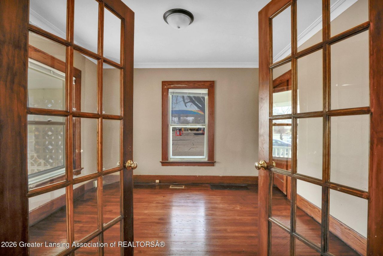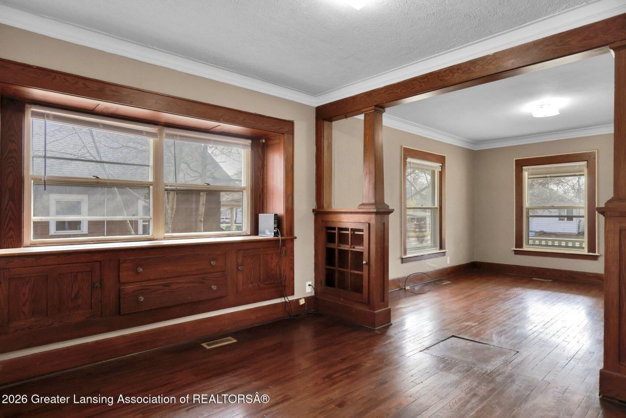 This beautiful bungalow is perched on a fenced-in corner lot on Lansings north side and is move-in ready. As the sun shines through the living and dining room windows, the historic charm of this home comes to life as it radiates over the hardwood floors and gleams on the lovely built-in features throughout. The hardwoods span through to the two handsomely sized main floor bedrooms. The kitchen features a splash of the modern with new stainless steel appliances and a pleasantly sized eat-in kitchen. The bathroom features a tasteful mix of tile and vinyl. Fresh paint on the exterior and basement freshens up the home for any need. From the back door, two nicely sized parking spaces lay on the other side of a ramp leading to the rear door. This one will not last long. Schedule your showing today