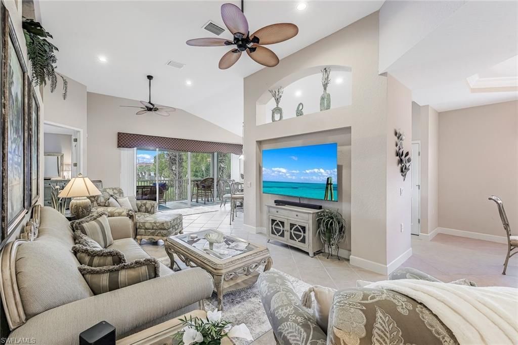 The Real Estate Reality...South West Florida is a destination...keeping the REAL in Real Estate!Beautifully furnished, 3-bedroom, 2-bath second-floor residence, w/attached (1) garage, accordion hurricane shutter protection and it is ideally positioned at an elevated vantage point, offering Southern exposure w/sweeping views of an expansive lake and lush tropical vegetation as seen from main living space and upfront from the oversized Lanai (an outdoor extension to the living space). Enjoy ultimate privacy surrounded by swaying palm trees and serene natural beauty as you sip your morning brew or night cap).This impeccably maintained condo offers soft neutral tones and a casual coastal environment. A Great Rm floorplan w/formal Dining Rm, Eat in Kitchen and Breakfast bar and split bedrooms: Master ensuite overlooks the lake w/slider access to Lanai, w/KS bed, lge walk in closet, a spacious five fixture bathrm (dual sinks). Guest BR 2 offers QS sleeping and GBR 1 is set up as a guest retreat w/QS bedding and it's large enough to have a full size sofa sitting area. Laundry is in residence w/added cabinetry. Kitchen offers clean lines w/travertine backsplash, stainless appliances and abundant counter space. Access to the garage from your ground level foyer.Located within the highly desirable, gated Crown Colony community, this home is just a short drive to the ever-inviting island beaches of SWFL, Estero (FM Beach), Sanibel (and Causeway Beach) and Captiva Islands. Convenient access to dining, shopping, entertainment, medical facilities and RSW Airport, all which makes this an exceptional location, location, location.The community spans over 400 acres of beautifully maintained grounds and golf course views as you meander through the community of estate homes, villas and carriage homes. Crown Colony offers resort-style amenities, including a lakeside community pool, hot tub, tennis courts, and well-equipped fitness center. Low fees also include optic cable and Xfinity X1-high speed internet, Master insurance for exterior and flood policies, Lawn Care, Roof/Bldg Mtn and more...Golf course and/or Social Membership is available as an option, it is not mandatory.Experience tranquil Florida living at its finest in this private, picturesque setting. Know your NO's...NO CDD, NO City Tax, NO Golf included (separate membership)Know your KNOW'S...Doctors/Medical professionals this is located within 3 miles of Health Park Medical Center and within 6 miles of Gulf Coast Medical Center, KNOW to educate yourself w/Condo Governance and Budgets. KNOW Rules and Regulations, KNOW what you're clicking on when you want more information
