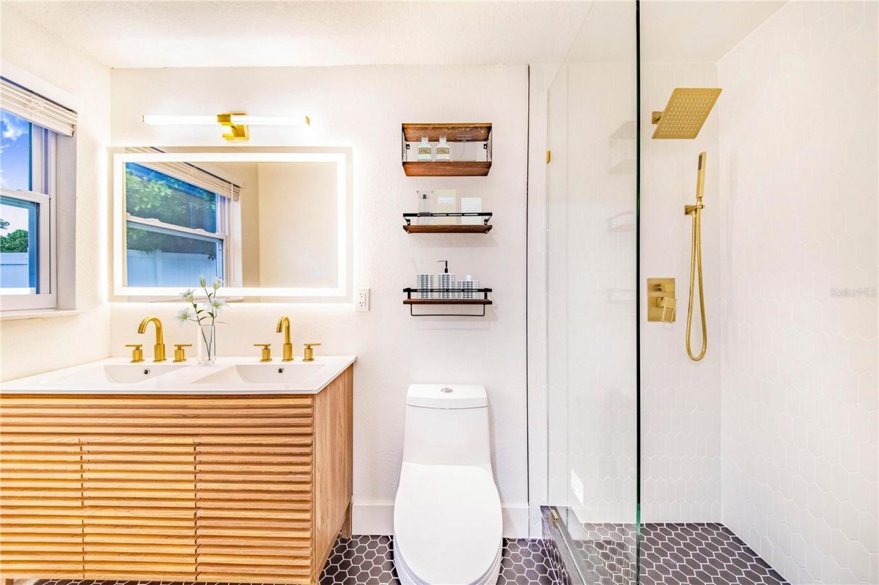 One or more photo(s) has been virtually staged. This beautifully renovated move in ready 3-bedroom, 2-bathroom home offers peace and tranquility, nestled in a cul-de-sac neighborhood. Built with durable block construction, this home combines both style and substance, featuring a brand-new roof (2023), new HVAC system, a new water heater. As you step inside, you'll be greeted by an open floor plan that seamlessly connects the living, dining, and kitchen areas. The island kitchen is a chef's delight, boasting dove grey cabinets, elegant quartz countertops, and brand-new stainless steel appliances. The entire home is adorned with luxury vinyl flooring, extending through the kitchen, dining room, and all three bedrooms. The bathrooms have been fully renovated, featuring stylish new tile, hardwood-style vanities, and modern fixtures. The master bath is a true retreat, complete with gold plumbing fixtures, adding a touch of luxury. Additional upgrades include new lighting fixtures throughout, can lighting in the living room and exterior patio area, and fresh interior paint. The home also features new interior doors, trim, and baseboards, as well as newly installed window blinds. Electrical outlets and light switches have been updated, ensuring the home is move-in ready. Outdoor living is just as impressive! Step outside to your covered patio, perfect for entertaining or relaxing. The backyard features a gazebo with an electric hookup, a grill for BBQ enthusiasts, and a fully fenced yard with a mix of vinyl and wood fencing. The new landscaping, including fresh sod and Clusia plants, adds to the home's curb appeal. The two-car garage has been upgraded with fresh epoxy flooring and offers plenty of storage, including new cabinets and a pantry in the laundry room. Best of all, this property is NOT in a flood zone, offering extra peace of mind. Don't miss the opportunity to make this stunning home yours! Contact us today for a private showing.
