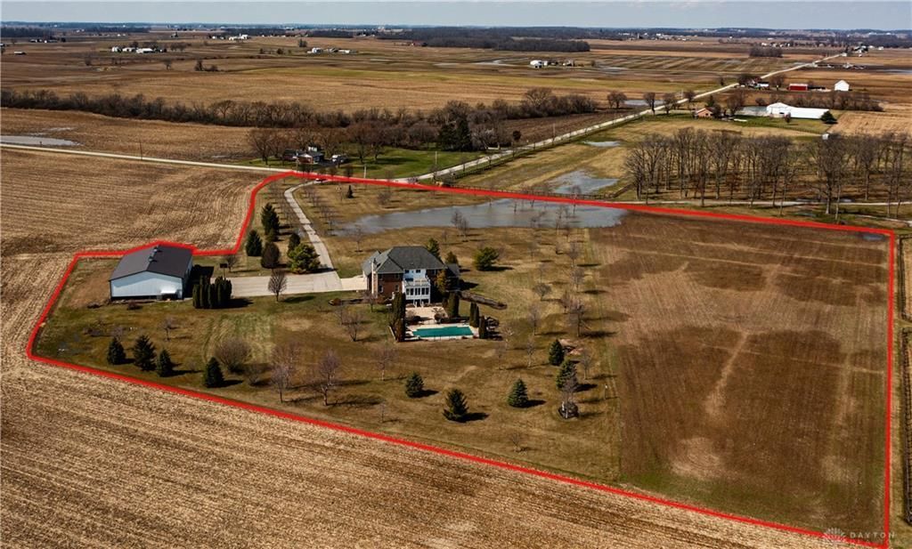 Nestled gracefully on a sprawling 13-acre expanse, this estate offers a symphony of luxury & functionality. The centerpiece of this property is a remarkable 4-bedroom, 3.5-bathroom home w/over 6000sq ft of living space. Step into the heart of the home, a chef's kitchen adorned w/a vast island, perfect for culinary creations or casual breakfast gatherings. Equipped w/top-tier amenities including a commercial fridge/freezer, Granite countertops, pantry & a convenient pot filler over the stove, this kitchen is a culinary oasis. Grand 2-story foyer, leading to a cozy living room featuring a fireplace, a serene sitting area ideal for quiet moments w/a book & an elegant formal dining area. A dedicated office space offers tranquility for remote work or creative pursuits. Sunlight pours into the sunporch, offering a peaceful retreat for morning coffee or nurturing a collection of beloved plants. A half bath for guests completes this level. Ascend to the second floor, where 3 generously sized bedrooms await, complemented by a well-appointed full bathroom & a 2nd-floor laundry room, simplifying household chores. Owner's suite is a sanctuary unto itself, boasting a palatial layout complete w/a sumptuous soaking tub, a custom shower w/a sauna & a walk-in closet deserving of admiration. Step onto the private deck, overlooking the lush backyard. Basement unfolds as a space for leisure & entertainment, featuring a game area, recreation room, a 4th bedroom & a stunning full bathrm, w/a walk-out providing seamless access to the outdoors. Exterior of the property is equally impressive, boasting an inviting inground pool, perfect for relaxation or recreation. A 3-car attached garage for all vehicle & equipment. Crown jewel of the outdoors is the massive 96x54 pole barn, boasting expansive bays designed for the storage of a camper or any enthusiast's prized possessions. Peaceful county drive to Dayton, Cincinnati or Columbus. Only 15 mins from World Equestrian Center in Wilmington OH.