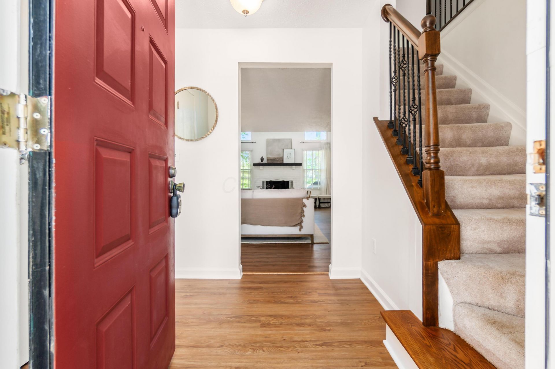 Tucked away on a quiet cul-de-sac in desirable Dublin and located within Dublin City Schools, this beautifully maintained traditional 3-bedroom, 2.5-bath home offers the perfect blend of comfort, space, and move-in-ready convenience.A welcoming front stoop leads into an inviting family room with soaring vaulted ceilings, a cozy gas fireplace, and abundant natural light--creating a warm, open atmosphere ideal for everyday living and entertaining.The kitchen and dining areas flow seamlessly to the outdoor living space, where sliding glass doors open to a deck overlooking a fenced backyard. Enjoy your own private retreat with a hot tub/spa, perfect for relaxing evenings or hosting guests.Upstairs, you'll find generously sized bedrooms, including a comfortable primary suite with a private bath, plus an additional bonus room that makes an ideal home office, or flex space--perfect for today's lifestyle.Additional highlights include an attached 2-car garage, new LVP flooring throughout the main level, and recent attic insulation for improved efficiency. Major mechanical updates include a furnace and hot water heater (approx. 2020), offering added peace of mind.Located just minutes from shopping, dining, parks, and major commuter routes, this home combines a functional layout, inviting indoor/outdoor spaces, and a prime Dublin location.