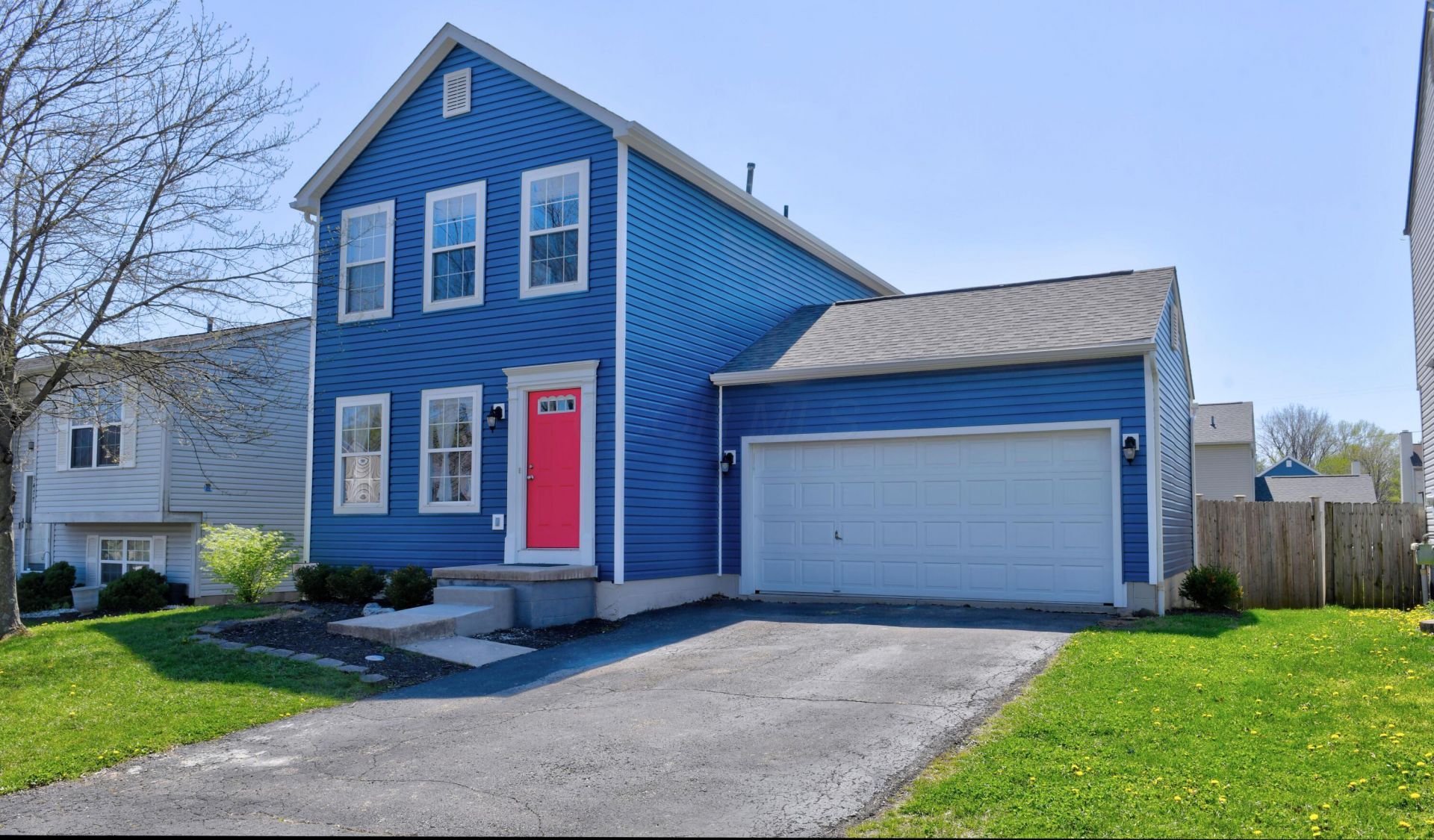 Street Presence! This stunning home has major curb appeal with new dark blue siding, gleaming white window and door trim, and a red door that really pops. Walk into an open concept living room with dedicated eating space and sizable kitchen. The first floor also includes a convenient half bathroom and pantry. Off the kitchen you'll find sliding glass doors leading to your private oasis with new Deck, Pergola, and 6' privacy fence. Upstairs are 3 spacious bedrooms. The primary suite includes a walk-in closet and full en-suite. There is an additional full bathroom with a bath tub. The basement has ample storage space, including a deep crawl space. There is great opportunity for added value by finishing the basement, adding living space and square footage. The attached 2 car garage adds peace of mind for your vehicle(s) on inclement weather days as well as additional storage for lawn equipment! Roof 2024, A/C 2024, and Siding 2024. See documents for more information!Conveniently located near Easton Towne Center AND Polaris, close to shopping, dining, and parks. Westerville School and Columbus Taxes!Seller is providing a Choice Ultimate Home Warranty! OPEN HOUSE SATURDAY, 4/18 from 2-4PM.
