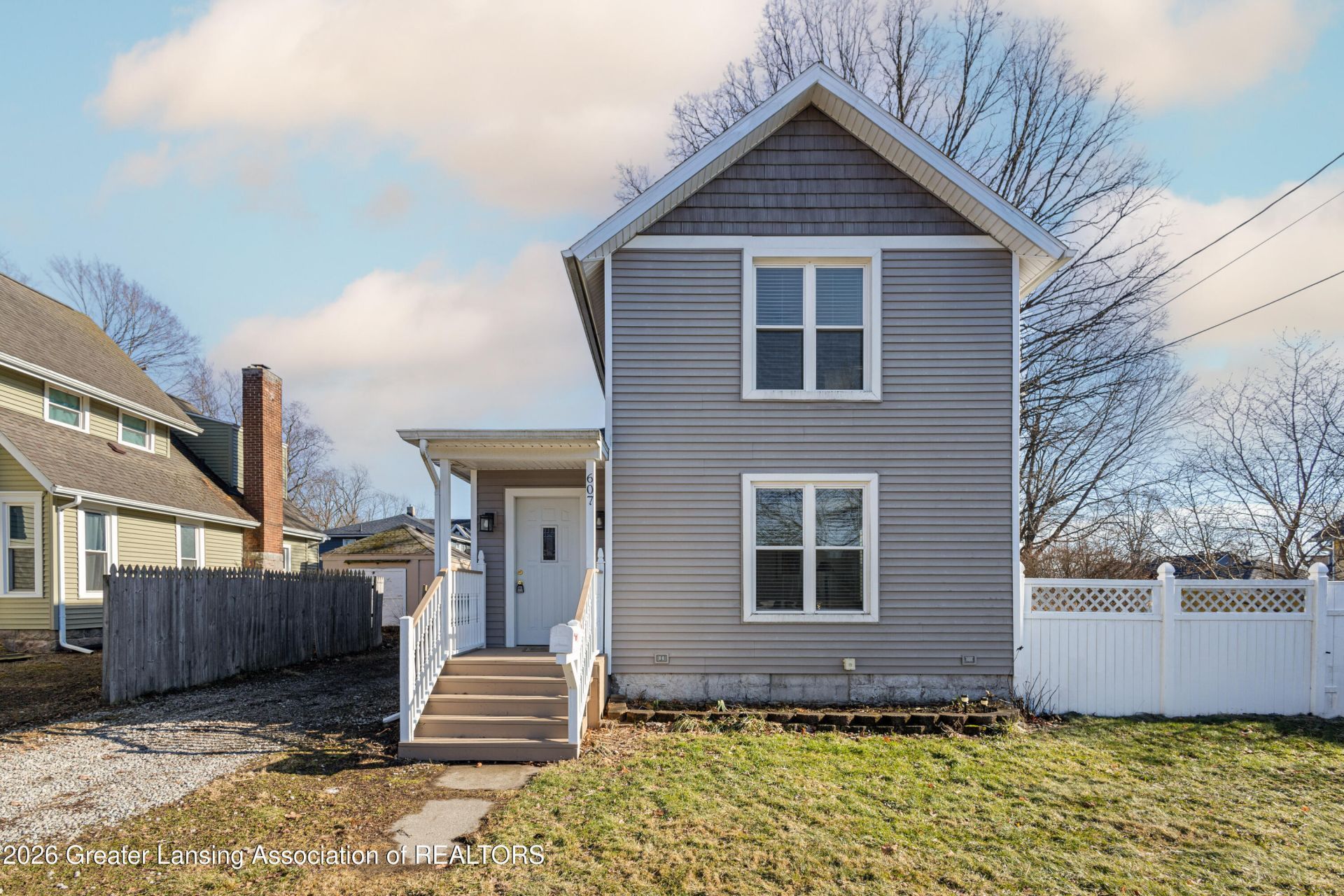 Welcome to Grand Ledge! You will love the location of this 3 bedroom, 2 full bath farm house style home. With mechanical and cosmetic upgrades, you can move right in and enjoy the flexibility of walking to downtown businesses & restraunts, enjoying the numerous parades and festivals hosted throughout the year, walking distance to schools, and enjoying your own large backyard that is fenced with a new deck that has room for lounging, entertaining, and playing. First floor laundry and primary en suite is on the first floor. Dont miss your chance to own a great house in a vibrant community.
