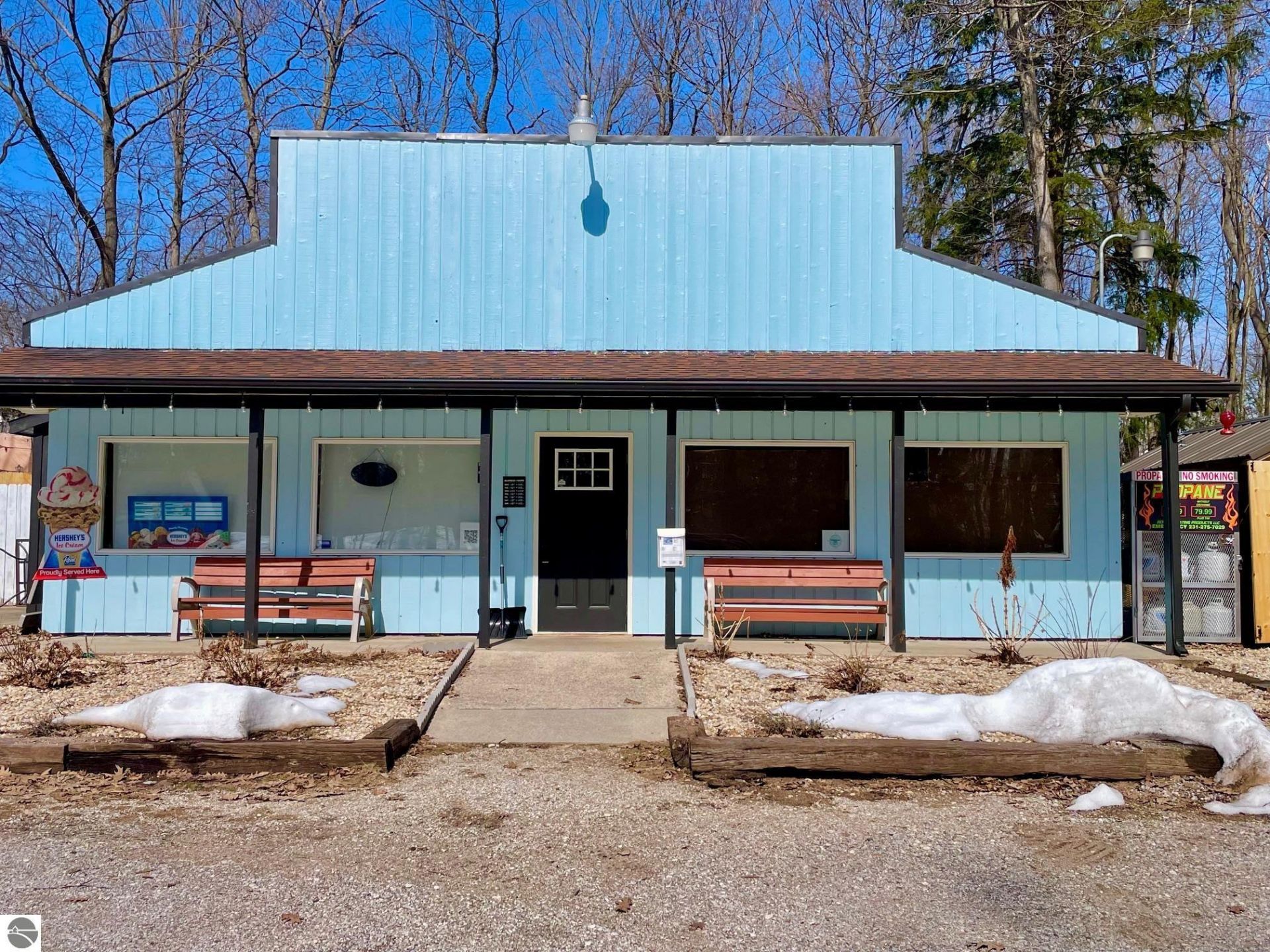 Income opportunity between the Platte lakes, west of Honor in Benzie County. Set your business sights on this 1800 Sq. Ft. building with commercial uses possible in a recreational paradise. Work diligently and reap the benefits of making a living in Cottage Country, near the Platte River, lakes and the Sleeping Bear Dunes National Lakeshore Park to the west along scenic, spectacular M-22. This half-acre site has been used as a convenience store and more recently as a deli. Many possibilities exist for this location, including take-out pizza and boxed lunches to go (pizza oven/deli equip. available), with a liquor license for carryout available to purchase. Add to your income with bicycle rentals (think touring bikes, fat-tire bikes or e-bikes). Or make this space into a specialty coffee shop and bakery, gift shop, convenience store, studio/gallery or combination of the above. The building is also available to Rent. There is ample parking and even room to upgrade the septic should you decide to live and work here. So much to offer in a great location with an Up North vibe.