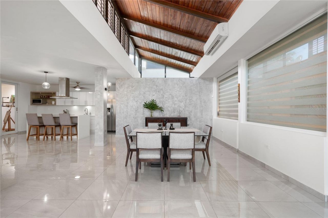 Set within the gated community of Mansiones de Villanova, this one-story residence offers space, privacy, and a central location near Montehiedra.Spanning 3,132 square feet on a 797 sqm lot, the home features an open layout where living, dining, and outdoor areas connect seamlessly, while still maintaining clear definition between spaces. Natural light flows throughout, enhancing the sense of openness and connection to the outdoors.The main living areas extend into a private backyard designed for both relaxation and entertaining. A terrace with a built-in bar structure and sink overlooks the pool, private half basketball court, and garden, surrounded by greenery that creates a fresh and comfortable setting.The home includes four bedrooms plus a flex room, with a spacious primary suite featuring a walk-in closet and a bathroom with dual his-and-hers sinks. The additional bedrooms offer flexibility for guests, family, or workspace needs.The kitchen has been remodeled and comes fully equipped, along with laundry appliances. The residence is move-in ready and includes a generator, water cistern, solar water heater, and five air conditioning units for everyday comfort.Located within a controlled-access community, residents also enjoy amenities such as a tennis court and children's playground, along with easy access to main roads, shopping, and schools. The overall setting offers a practical, family-oriented lifestyle in a private and well-connected environment.